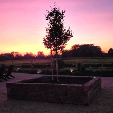The first thing you see when you enter the garden through the barn is the Ginkgo tree. Shelly loves trees so we knew we needed several trees in the garden. The west entrance features two Yoshino cherry trees.